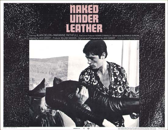 Delon clutches the limp body of the leather-clad Marianne Faithfull.