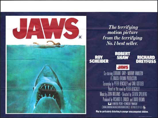 A truly iconic image of the Great White Shark for a movie that created the summer blockbuster and suddenly made beach holidays a less relaxing prospect.