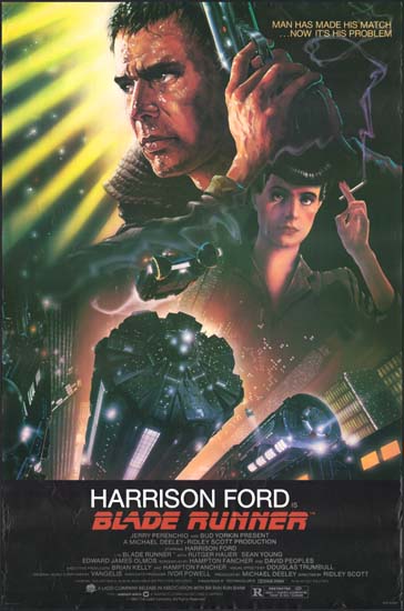Replicants run wild in Ridley Scott's dystopian masterpiece. Unfortunately there are many replicants of this highly popular poster, but this is a nice unfolded example of an original, perfectly blending film noir and science fiction graphics.