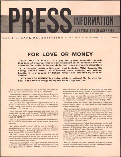 For Love or Money original UK Pressbook