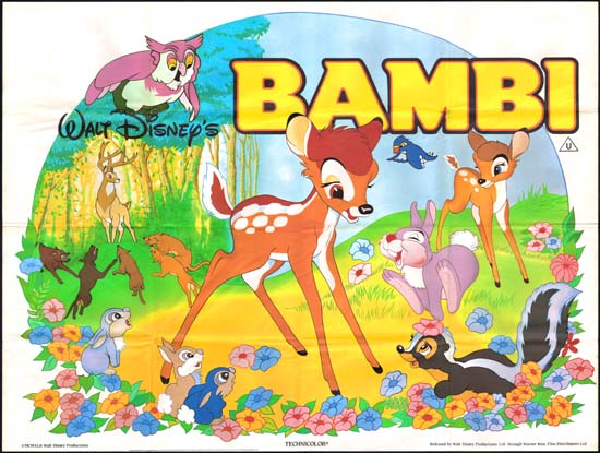 Although the fate of Bambi's mother must have traumatized countless children through the ages, this is a perennial favourite from the Disney stable with beautiful animation. All the best-loved characters are shown on this poster.