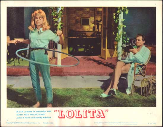 One of the most iconic images from the film where Professor Humbert can't stop himself peering at Lolita's naively sensual hula hoop gyrations.