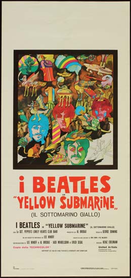 | Fab film from the Fab Four. An innovative work of art in its own right, it also boasts some of the Fab Four's best songs - A Day In The Life, All You Need Is Love, Eleanor Rigby, Lucy In The Sky With Diamonds, Sgt Peppers Lonely Hearts Club Band etc etc etc. This Italian poster captures the psychedelic magic of the animation perfectly. |