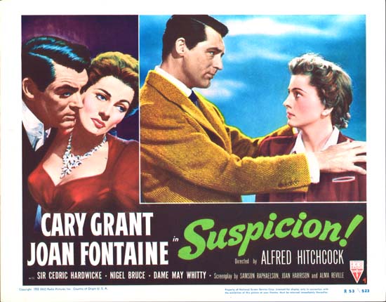Material is now quite scarce for this early Hitchcock classic, and this fabulous border artwork is sometimes preferred to the original release. Cary Grant plays slightly against type as the sinister bounder upon whom the suspicion of the title falls.