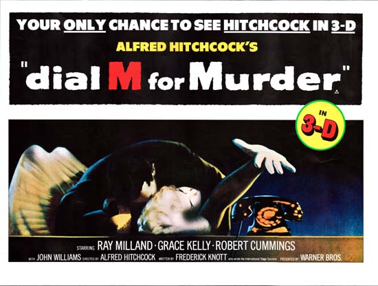 Rare 3-D poster based on the highly desirable US Half Sheet/British Quad design. Hitchcock shot the film in 3-D, but interest in this technique had dwindled by the time it was completed, so it was shown mostly as a flat print. This 1980s re-release marked its first dedicated 3-D run.