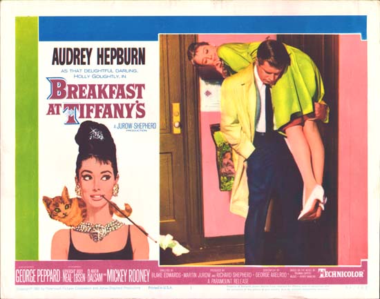 Audrey gets swept off her feet. Iconic border artwork, complete with cat and cigarette-holder, for the iconic Audrey Hepburn role. Based on the novel by Truman Capote.