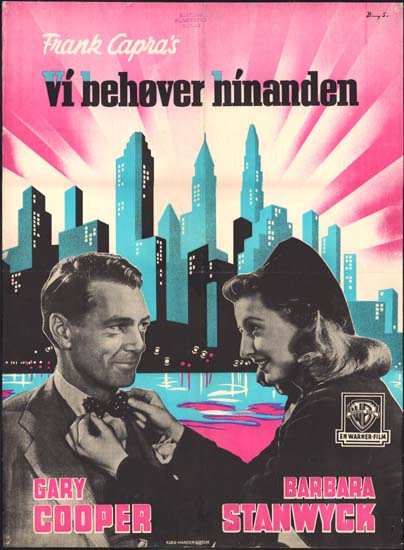 1st Danish release 1947 censor stamp (delayed by World War II). Striking art deco background for this Capra classic characteristically pitching the underdog against the establishment. The darker undercurrents in this one anticipate It's A Wonderful Life a few years later.