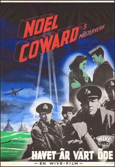 One of the most impressive designs worldwide for one of the great wartime classics, the poster shows how much it was considered Noel Coward's project. David Lean co-directed - his first foray into directing - but did not yet even merit a credit on many first release international posters.