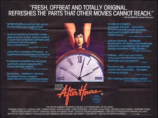 One of the best yuppie nightmare movies of the 80s, with Griffin Dunne trapped in a Kafka-esque New York City after dark.
