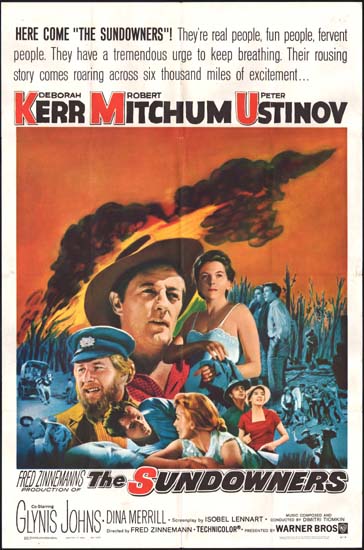 A pioneering family take on the sheep in the Australian outback. Terrific fiery artwork of Mitchum and Kerr on this attractive poster.