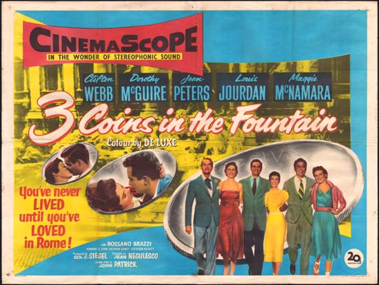 Hugely popular romantic fantasy from more innocent days, lavishly shot on location in Rome and Venice, and propelled on its way by Frank Sinatra's Oscar-winning song. One of the best posters worldwide with its Trevi Fountain backdrop.