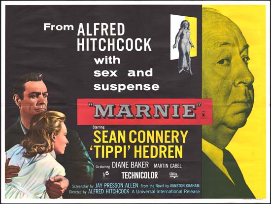 One of the best designs for a Hitchcock movie that was initially panned, but has steadily gained in stature over the years. Not missing a marketing opportunity, the poster tagline plays on Connery's recent mega-success in From Russia With Love.
