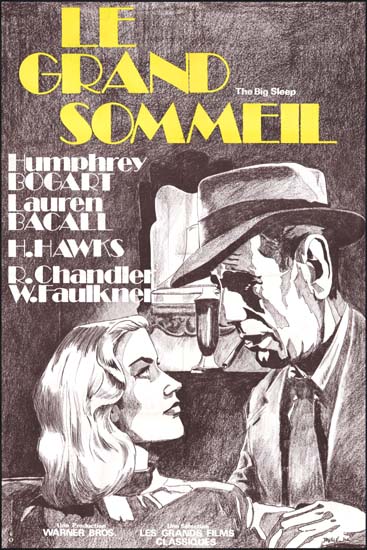Superlative film noir cranking up the sexual chemistry between Bogart and Bacall. This retro re-release poster captures the monochrome 30s/40s deco feel perfectly.