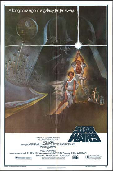 | Probably the most famous movie poster of all time, and probably the most bootlegged. This is the genuine article- no hairy belt, colour discrepancy etc. The film was such a hit, several print runs were required. This is the 2nd printing with NSS number 77/21 and no title in bottom right corner. |