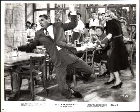 Eva Marie Saint shoots Cary Grant at Mount Rushmore. Or does she? An original vintage single-weight still, not a copy.