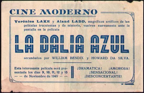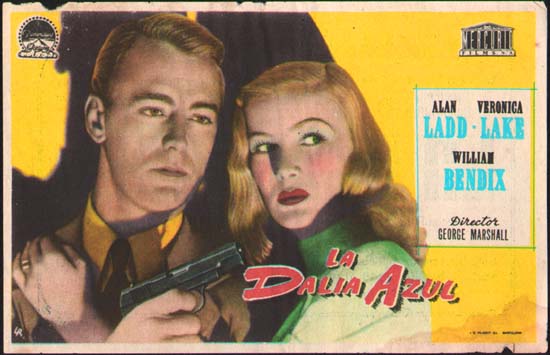 The classic pairing of Alan Ladd and Veronica Lake smoulders once more in this classic film noir, penned by the master of the genre Raymond Chandler. This is from the first Spanish release in 1949. Exact size 9x13.5cm.