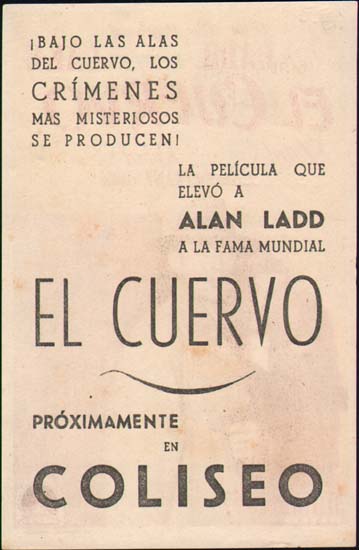 One of the most famous film noirs of the forties. This was meant to be Robert Preston's film, but most of the advertising material ended up spotlighting Alan Ladd as the cold killer, in what proved to be his breakthrough appearance. Exact size of herald is 9x13.5cm.