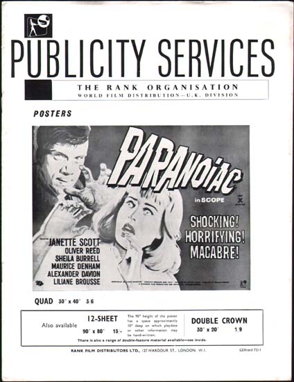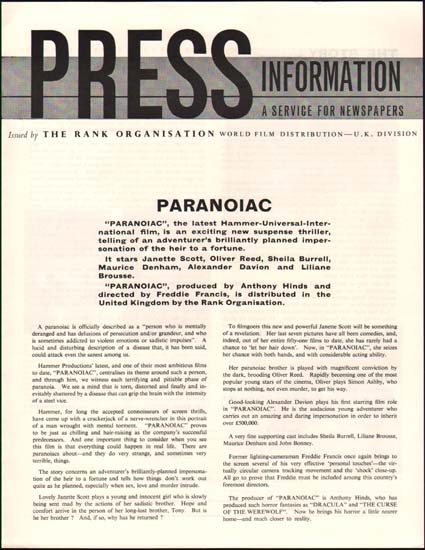 Unconventional Hammer horror full of twists and turns as an unstable family is made to face its demons. This 8-sided pressbook comes with a 4-sided press info supplement, both in superb condition. Additional images can be provided on request.