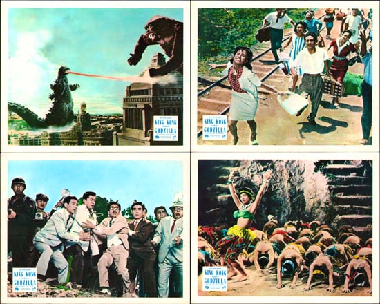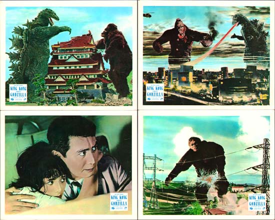 The meeting of two legendary monsters inevitably ends up in a giant punch-up in Tokyo. Somewhat naughtily the publicists used an image of the original King Kong in one of these stills, whereas in the film he looked more like a man in gorilla suit...