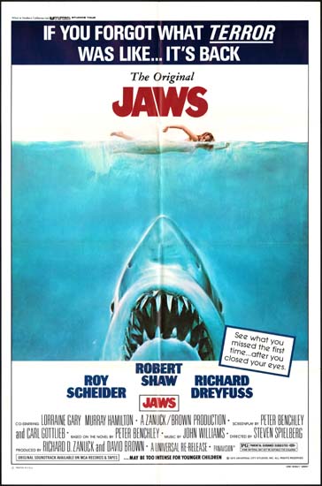 Early re-release for the movie that created the Summer blockbuster and inspired one of the most iconic movie graphics ever. John William's driving score evoked the undersea menace perfectly, even though Bruce the shark rarely appeared on screen.