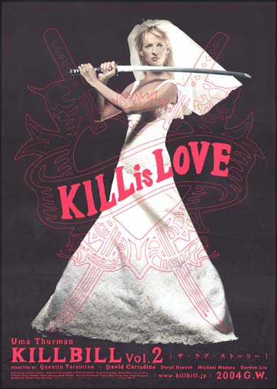 | Fantastic full-length shot of the murderous bride, complete with killer tagline only found on the Japanese release. Difficult to appreciate from the photo, but for this campaign the Japanese used a thicker paper than normal with a high-grade matt finish, making it more like an art print. |