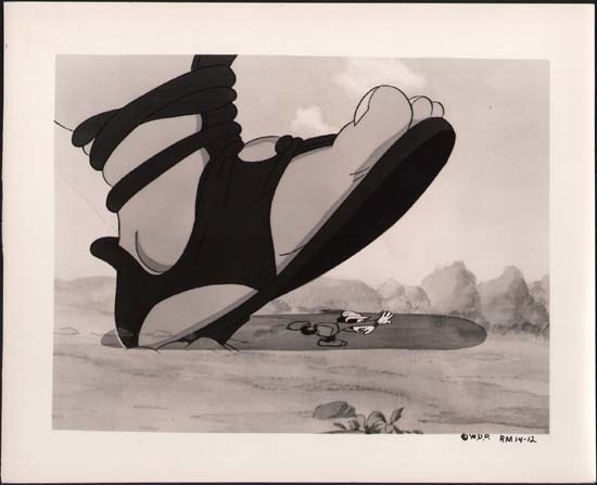 Mickey gets squished by the giant. Original key book photo used for reference during the production/promotion of the film. These were not distributed to cinemas or media outlets but placed in books by the studios and often linen backed for durability. They are consequently much rarer than other stills.