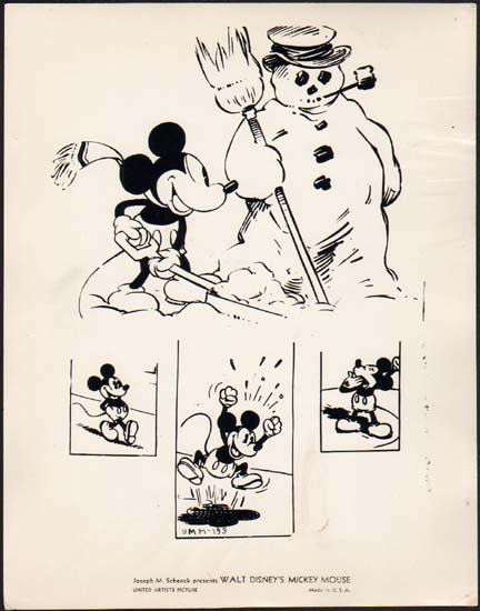 I haven't been able to link this early Mickey Mouse scene to a specific production, but it's almost certainly a generic image to publicise any of a number of cartoon shorts in the 1930s. Exact year unknown but Joseph M Schenck and United Artists distributed Disney shorts between 1932 and 1937.