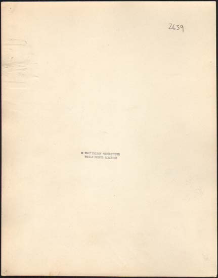 4 pinholes at edges, several paperclip impressions top right edge, scuff/smudge mark to right of box showing Mickey jumping, minor corner tip bends. Disney stamp on back where later archived.