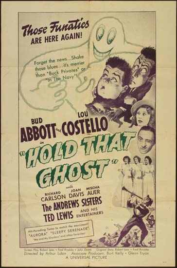 An early Abbott and Costello outing that finds the slapstick duo in a haunted house and the first of their Universal "horror" comedies. This one sheet poster was used when entertaining the troops in the 50s, and takes its image from a first release trade ad.