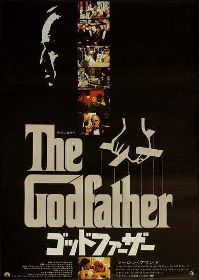 Most countries contented themselves with either the Neil Fujita designed Godfather logo or the profile of Marlon Brando, but this Japanese poster combines both with a cleverly positioned strip of scenes from the film.