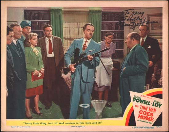 Fifth in the hugely popular series featuring wise-cracking crime-busting married couple Nick and Nora. Not forgetting Asta the fox terrier. This card was autographed by the multi-talented Gloria DeHaven, playing the cute blonde to the left of this scene. COA included.
