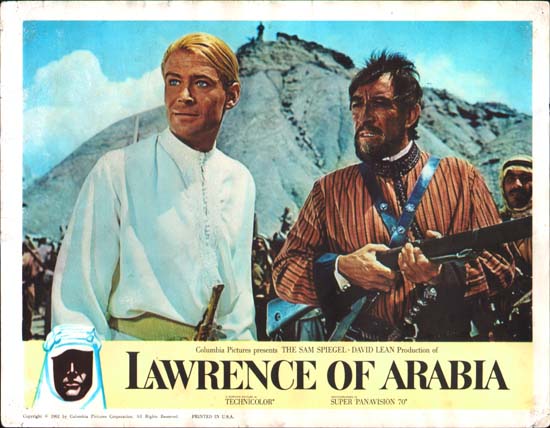 Excellent portrait shot of Peter O'Toole as Lawrence along with co-star Anthony Quinn. One of the great epic masterpieces the big screen was invented for.