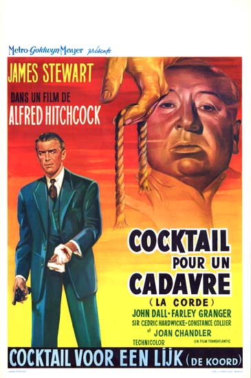 Beautiful colours on this scarce poster for the 1st re-release (beware of 80s reproductions often also misdescribed as re-releases). Experimental work from Hitchcock famous for its long takes, simulating drama in real-time to add reality and involve the audience. A technique familiar today from such TV shows as 24.
