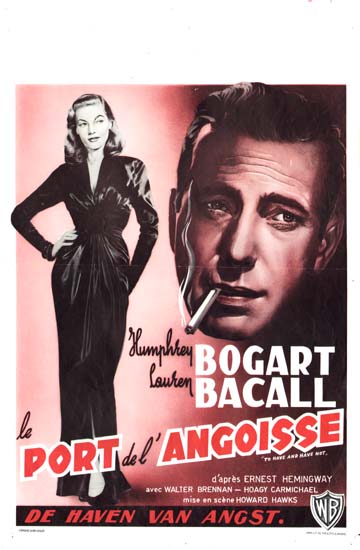 Solid gold classic marking the first meeting of Bogart and Bacall. An archetypal noir design showing slinky femme fatale while hard-bitten hero smokes cigarette in half-shadow.
