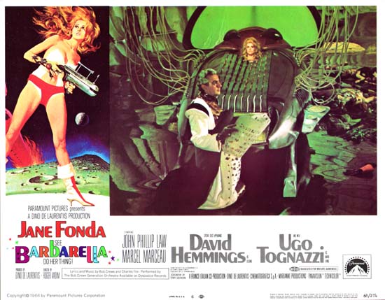 Barbarella at the mercy of Durand-Durand in a semi-erotic torture machine. This must be the swinging sixties.