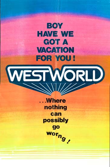 Rare, almost psychedelic, teaser for Michael Crichton's theme-park-gone-mad story. As we know, he was later to repeat this formula with Jurassic Park.