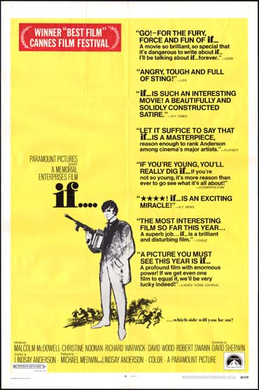 Completely in tune with youth rebellion of the late 60s, Malcolm McDowell literally takes aim at a repressive establishment.